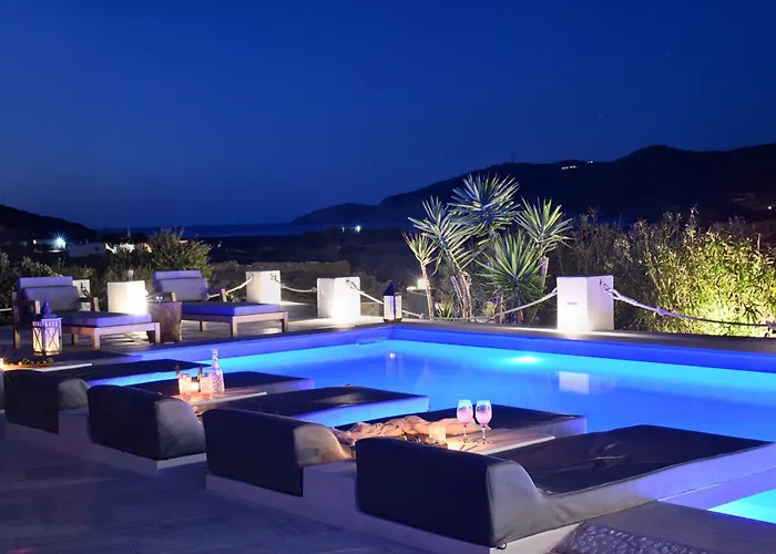 ホテルはフテリア ビーチかなり近くに位置し、Paralia Fteliasへも簡単に行けます。 FteliaにあるMykonos Dream Villasはパナギア テウルリアニ修道院から2.3km離れた所で、Naxos Cityから車で30分です。 遠方からお越しの方には、ミコノス空港まで車で12分です。